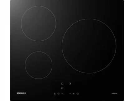 La Samsung NZ63M3NM1BB/UR es una placa de inducción para encastre con 3 zonas de cocción independientes. El ancho del aparato