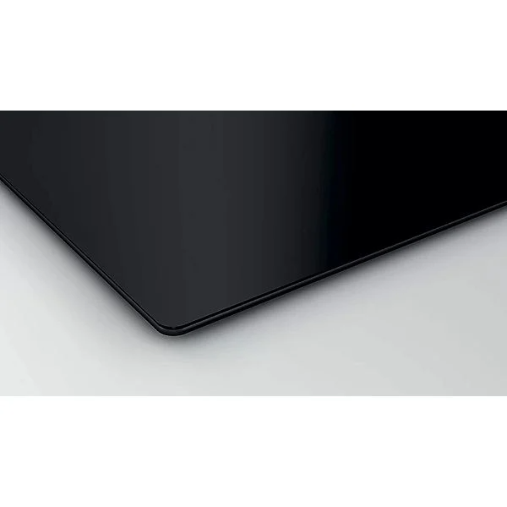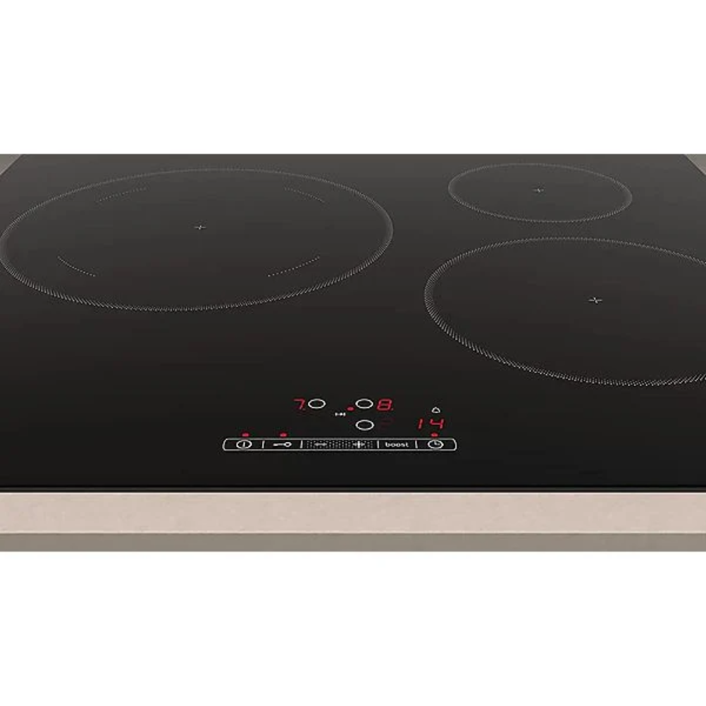 La Balay 3EB865ERS es una placa de cocción por inducción encastrable con superficie vitrocerámica y tres zonas de cocción. Integra control deslizante frontal, 17 niveles de potencia y función Sprint en las zonas de inducción. Incluye programación de tiempo de cocción para cada zona, avisador acústico independiente, función Memoria, inicio automático y bloqueo del panel durante la limpieza. Cuenta con detección de recipiente, indicador de calor residual, bloqueo para niños y desconexión automática. La zona de mayor diámetro admite recipientes de hasta 28 cm; las otras zonas tienen diámetros de 21 cm y 15 cm. La potencia total de conexión es de 7,4 kW. Funciona con recipientes compatibles con inducción, como menaje con base ferromagnética.
