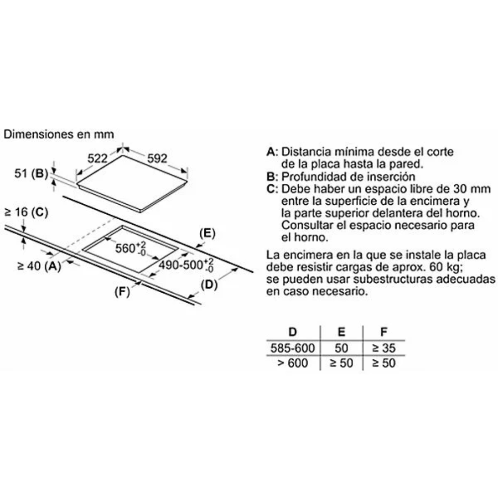 | Dimensiones hueco |