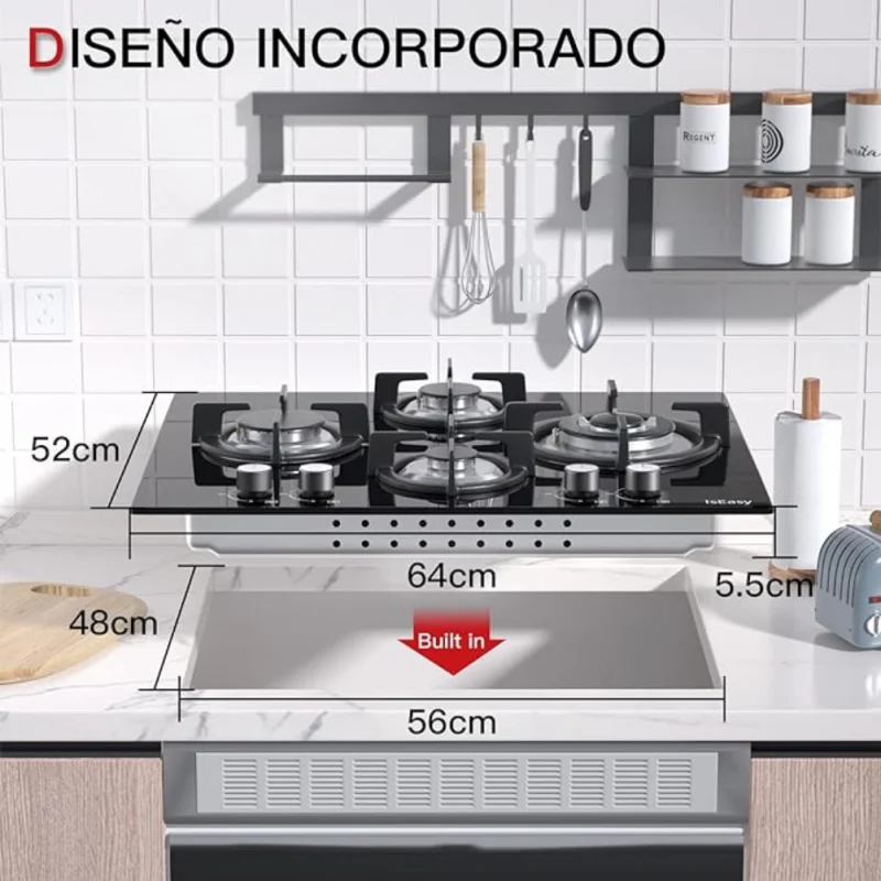 Placa de Gas 4 Fuegos Gas Natural/Propano IsEasy
