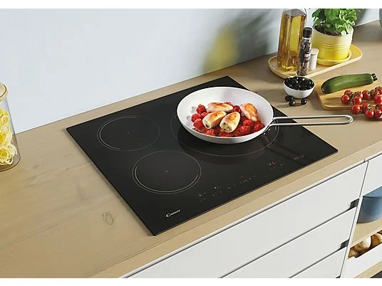La placa de inducción Candy CIDD633C es una placa de cocción con 3 zonas de inducción y formato de 60 cm. Este modelo funciona con recipientes aptos para inducción, con base ferromagnética. La cocción por inducción se activa cuando detecta un recipiente compatible situado sobre la zona correspondiente. La configuración de 3 zonas permite el uso simultáneo de varios recipientes dentro de la capacidad disponible de la placa y según el diámetro de cada zona. El producto está destinado a la preparación de alimentos mediante calentamiento por inducción. Marca: Candy. Modelo: CIDD633C. Tipo de producto: placa de inducción. Configuración: 3 zonas de cocción.