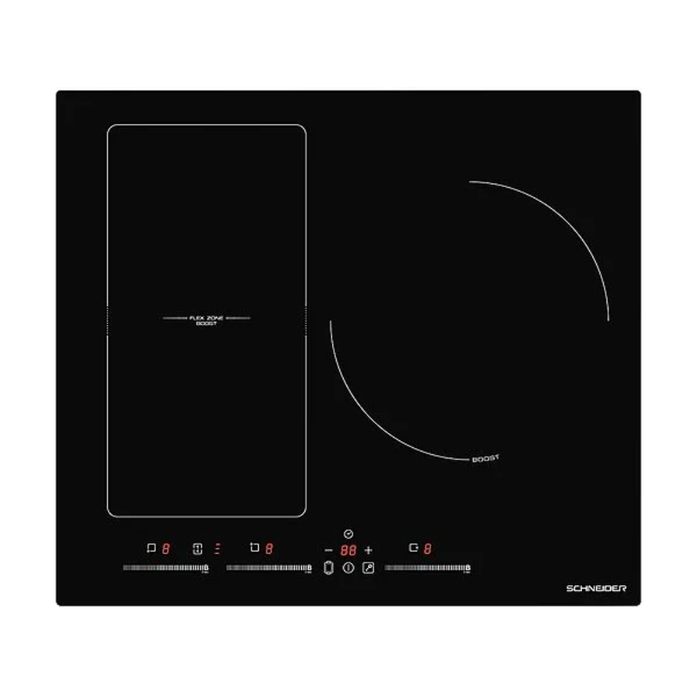 Placa de cocción por inducción SCHNEIDER, modelo SCTI6031N5/1, con potencia total de 7400 W. Electrodoméstico de cocción eléctrica por inducción, tecnología que funciona mediante la generación de un campo electromagnético en la zona de cocción y la transferencia de energía al recipiente con base ferromagnética. Requiere menaje apto para inducción. La referencia del producto es SCTI6031N5/1 y su clasificación corresponde a placa de inducción para cocción en encimera, con instalación y conexión eléctrica sujetas a las especificaciones técnicas del fabricante y a la potencia nominal indicada. Potencia total declarada: 7400 W. Marca: SCHNEIDER. Tipo de producto: placa de inducción. Referencia comercial: SCTI6031N5/1. Uso previsto: cocción de alimentos mediante calentamiento por inducción con recipientes compatibles.