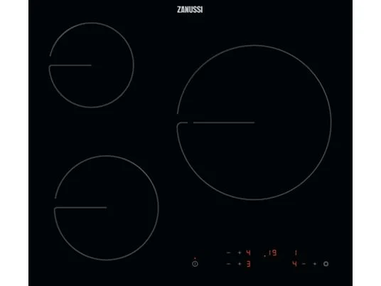 La Zanussi ZHRN638K es una placa vitrocerámica eléctrica con 3 zonas de cocción y un ancho de 60 cm. La superficie de vidrio cerámico integra tres áreas de calentamiento independientes para cocinar, calentar o mantener la temperatura de recipientes compatibles con placas vitrocerámicas. Entre sus zonas figura una de 27 cm, indicada para utensilios de mayor diámetro dentro de ese rango. El sistema de cocción de este tipo de placa funciona mediante elementos radiantes situados bajo la superficie vitrocerámica, con contacto directo del recipiente sobre el panel. El formato de 60 cm corresponde a una placa para instalación en encimera. La referencia comercial del modelo es ZHRN638K y pertenece al catálogo de placas de cocción de Zanussi. Su configuración se basa en una distribución de tres zonas sobre una superficie plana continua, propia de las placas vitrocerámicas eléctricas.
